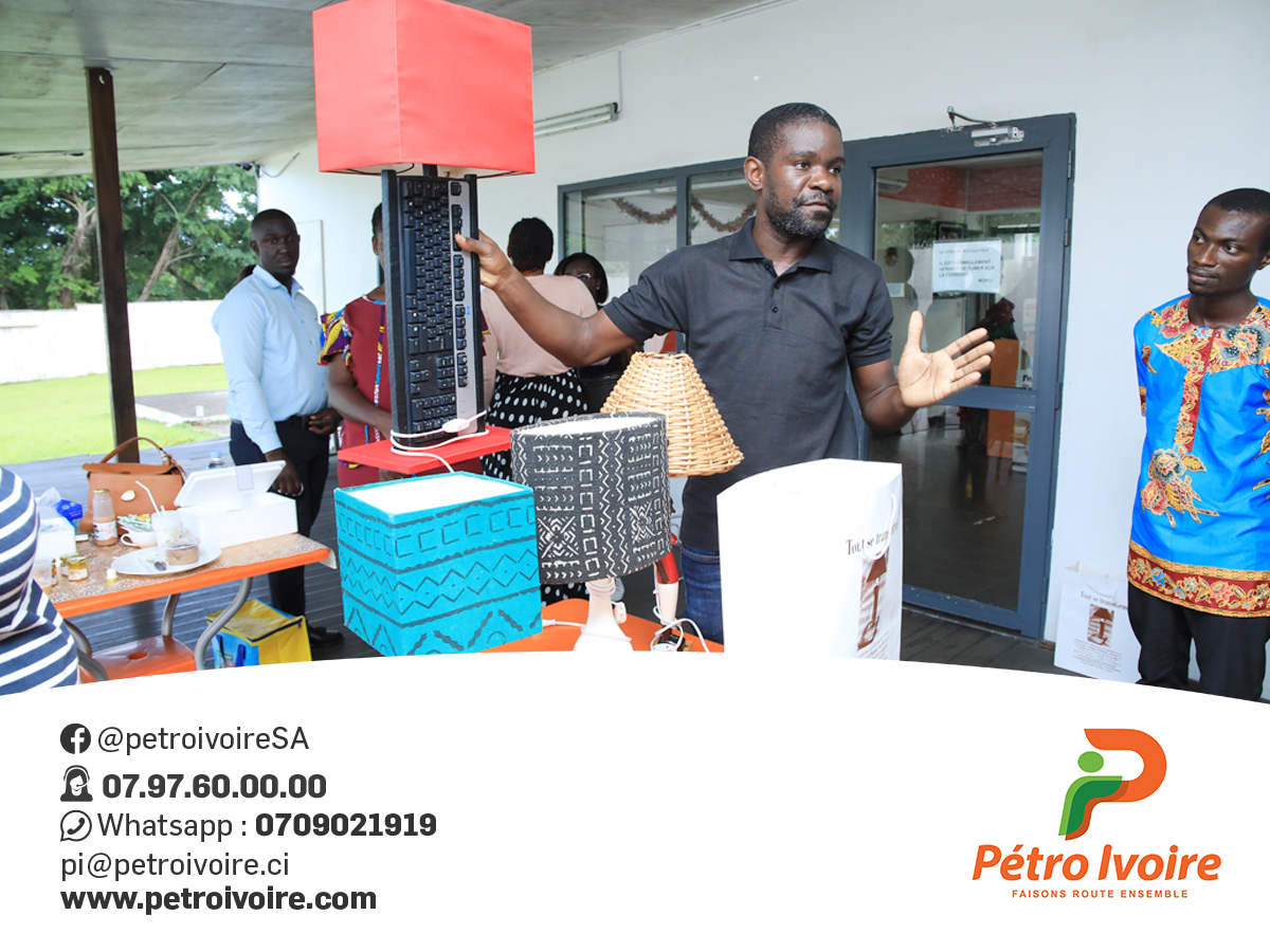 Après le traditionnel "Akwaba", qui a officiellement marqué le début de la cérémonie, la représentante du Maire a pris la parole pour saluer l'initiative citoyenne de Pétro Ivoire et son engagement envers les jeunes artisans ivoiriens. La promotion de l'artisanat étant au cœur de ce projet, Madame Rita INDAT, Chef du Département de la Communication de Pétro Ivoire, a présenté les objectifs de ce projet inédit. Elle a exposé les différentes étapes du concours qui s'est déroulé sur 5 mois, les objectifs, les enjeux pour Pétro Ivoire, ainsi que les prix décernés aux quatre lauréats de cette deuxième édition. L'une des étapes marquantes de ce parcours passionnant a été la formation des finalistes.